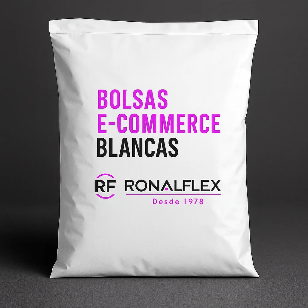 Bolsas eCommerce de polietileno blanco con interior opaco, diseñadas para ofrecer seguridad, estética y resistencia. Con cierre inviolable y superficie ideal para personalizar con stickers, etiquetas o escribir encima.